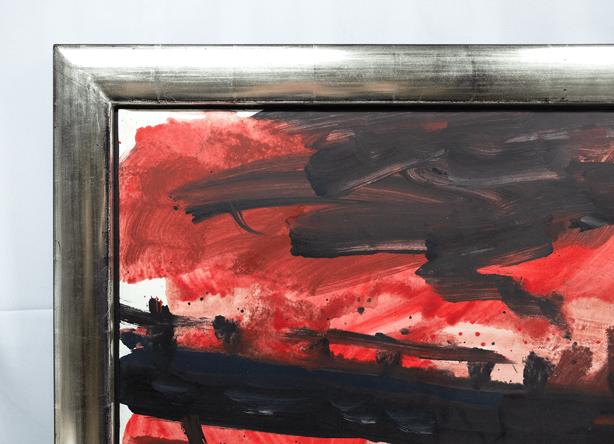 Acryl op papier op doek. 1990. Gesigneerd linksonder en gedateerd “B. Zimmer ’90’”. Afmetingen afbeelding ca 70*100 cm. Afmetingen lijst ca 82,5*112,5 cm. Speldenprikjes in de bovenste hoeken, onopvallende vouw in de linkerbovenhoek, in uitstekende originele staat. Provenance: Galerie Delta, Rotterdam.