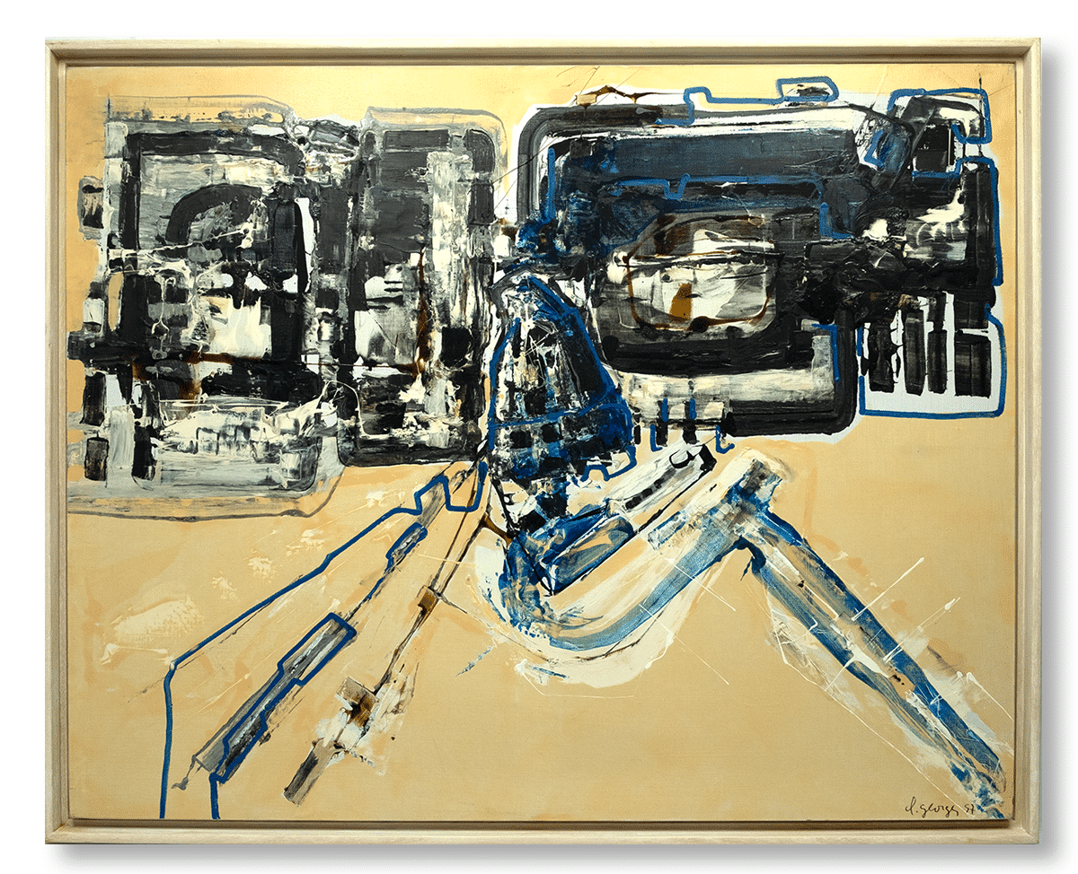 Claude Georges (1929-1988) – Zwarte vormen op gele achtergrond