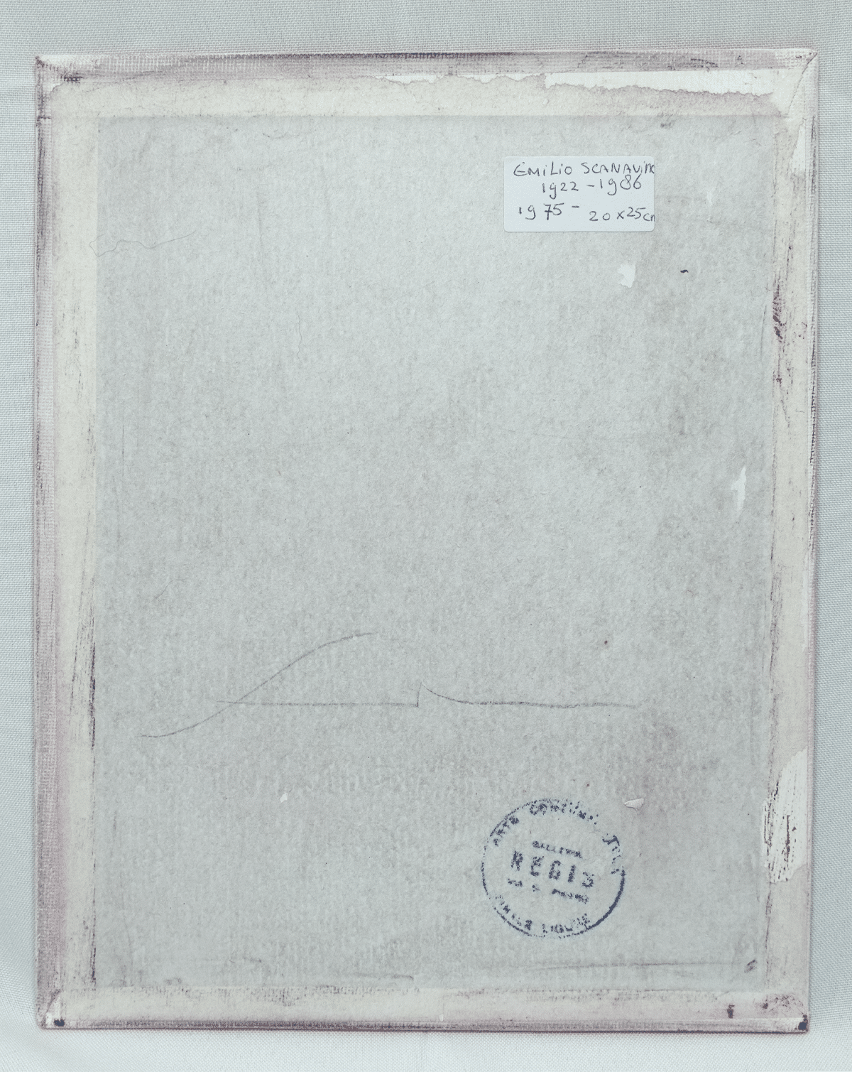 Provenance: op de achterkant de handtekening van Scandavino plus een stempel van Galleria Regis, Finale Ligure (deze galerie is geopend in 1967, meerdere werken van Scandavino, met dezelfde stempel, zijn bij deze galerie aan het eind van de jaren zestig, begin jaren zeventig, verkocht).