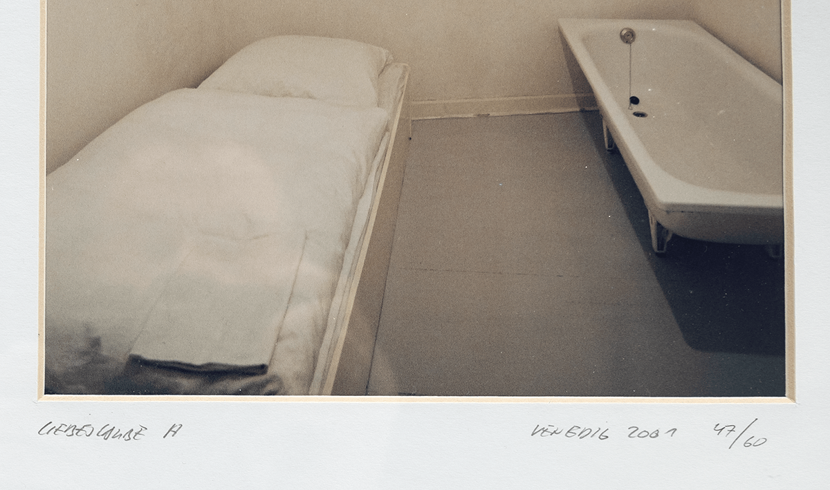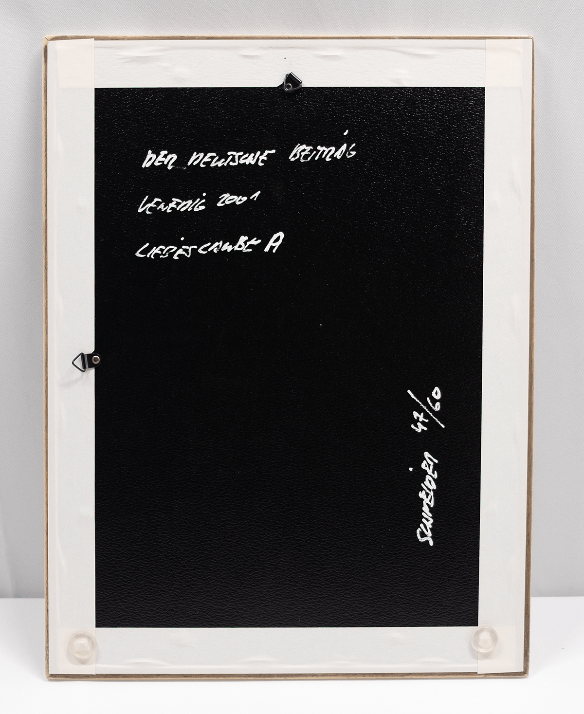 Kleurenfoto’s A en B. 2001. Gesigneerd en genummerd 47/60 op de achterzijde. Uitgegeven door Parkett Verlag, Zurich. Afmetingen foto’s ca 17*23 cm, afmetingen lijst, met handgemaakte passe-partouts van Schneider, ca 32*42 cm.