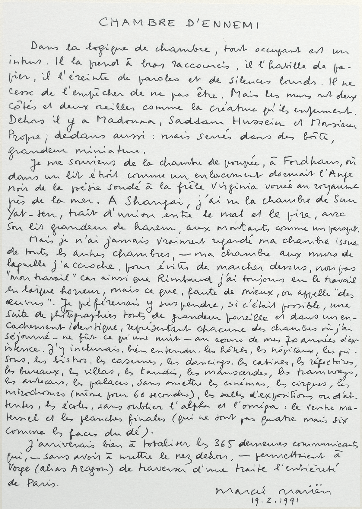 Marcel Mariën (1920-1993) – Chambre d’ennemi I à V
